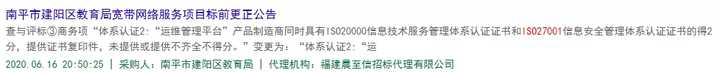 以下信息來源于中國政府采購網,通過ISO27001或ISO20000可獲得1-2分加成。