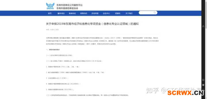 關于申報2019年東莞市經濟和信息化專項資金(信息化專業認證領域)的通知
