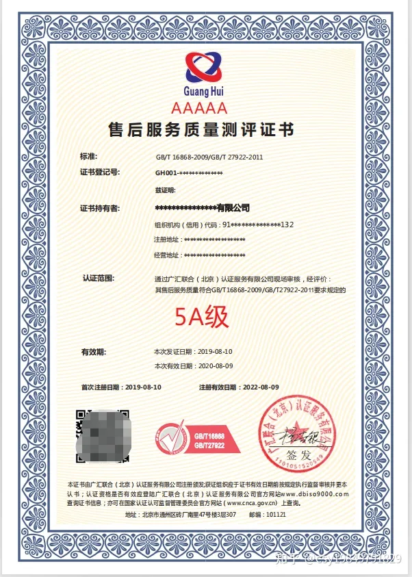 售后服務體系認證證書是什么?