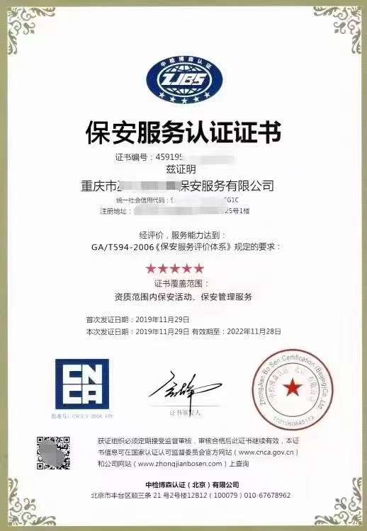 五星級保安服務認證證書去哪里辦理