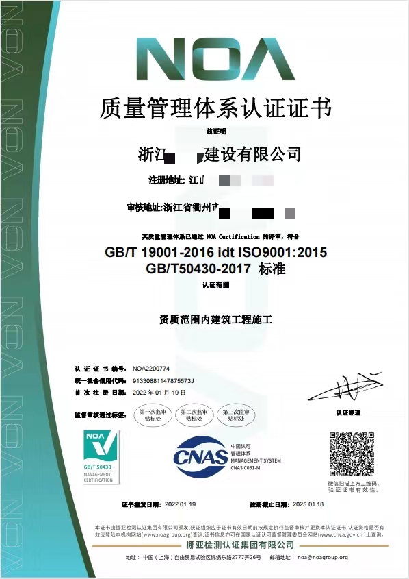 50430體系建筑施工企業(yè)需要辦理哪些ISO體系認(rèn)證證書