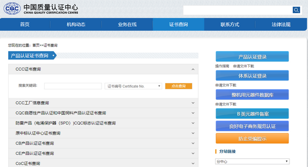 2、選擇點擊,證書查詢,進入到中國質量認證中心,證書查詢界面,如下圖所示: