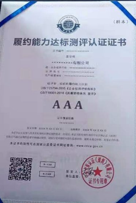 履約能力測評證書的好處:企業參與市場經濟活動,總是伴隨著各種風險,而信用風險就是其一。據統計,每年因信用缺失給企業造成的直接和間接經濟損失就高達6000億元。信用風險又被稱為交易對方風險或履約風險,指信用活動中因一方不守約而造成對方受損的風險。信用風險客觀上同信用關系是否規范、信用秩序是否正常密切相關。企業履約能力,是指企業全面履行購銷合同中規定的合同義務的能力。企業履約能力主要包括支付能力和生產能力兩方面的內容:1、在審查支付能力時,主要審查對方當事人的注冊資本、資金來源、銀行存款、交款能力等情況。2、在審查生產能力時,主要審查對方當事人的生產能力、生產規模、技術水平、產品質量、交貨能力等情況。審查履約能力的目的是提高經濟合同的真實性和可行性