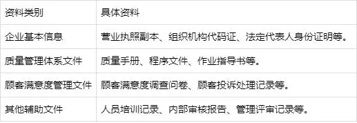 3.資料準(zhǔn)備:根據(jù)我們提供的要求,您需要準(zhǔn)備相關(guān)企業(yè)資料,包括但不限于營業(yè)執(zhí)照副本、組織機(jī)構(gòu)代碼證、質(zhì)量管理體系文件等。