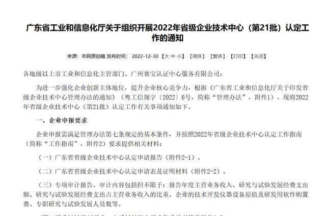 本篇文章會以廣東省的省級企業技術中心的認定工作大的通知為準。